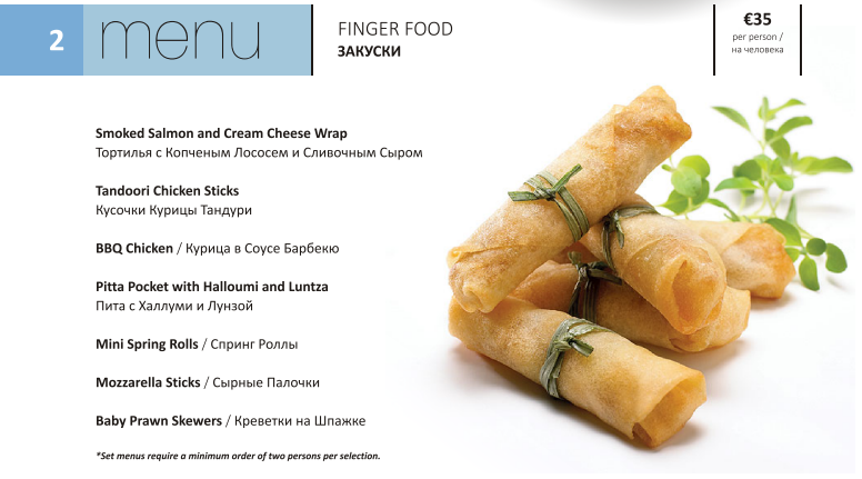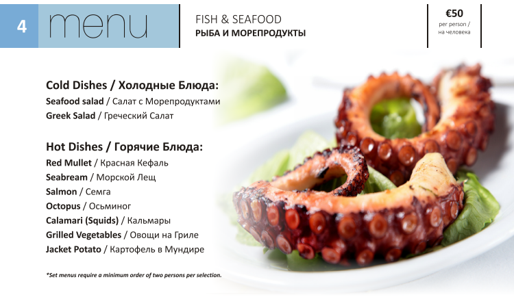 A choice of 4 menu's are available to pre-order (These can be seen in the image gallery above)